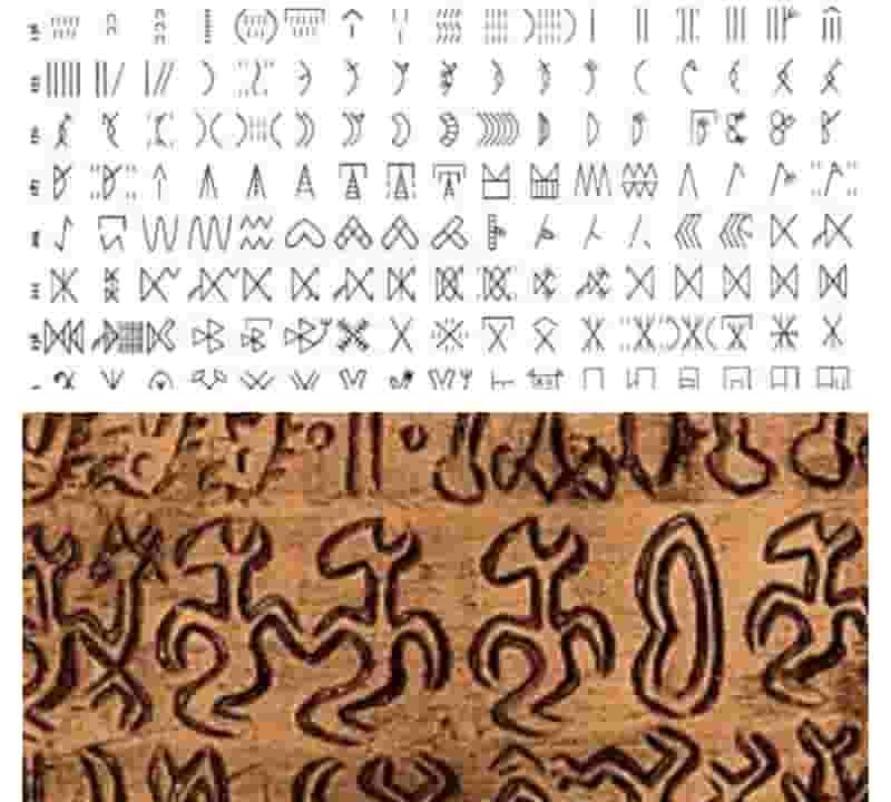 さらに、1つ前に紹介したインダス文字と同様に牛耕式で記されているという特徴と、人や動物を模した絵文字の頭部に、耳や目と思しきこぶ状の物体が付け加えられているという特徴もあります。